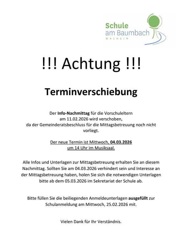 Schule am Baumbach, ja das sind wir, hier rechnen und lesen und schreiben wir. Schule am Baumbach, die lieben wir Kleine und Große, seid willkommen hier.