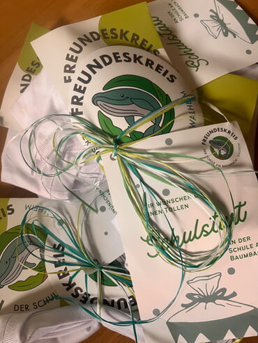 Bei der Einschulungsfeier am 18.09.2025 war auch der Freundeskreis mit dabei und konnte die Kinder zu ihrem großen Tag mit einem Starterkit überraschen. Es gab für jedes Kind ein Schul-T-Shirt zum Start in ihre Schulzeit. Ein herzliches Dankeschön an die Fa. Krause aus Walheim, die wir in diesem Jahr hierfür als Sponsor gewinnen konnten.